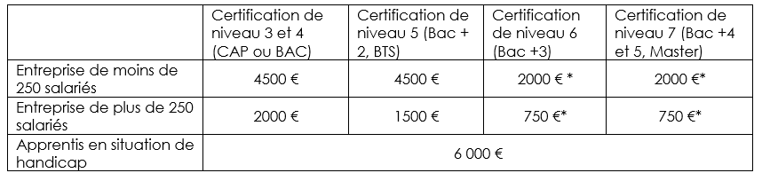 À noter : Pour toute formation de niveau 6 (Bac+3) et 7 (Bac+5) le CFA a l’obligation de facturer l’entreprise d’accueil 750 € au titre des frais pédagogiques