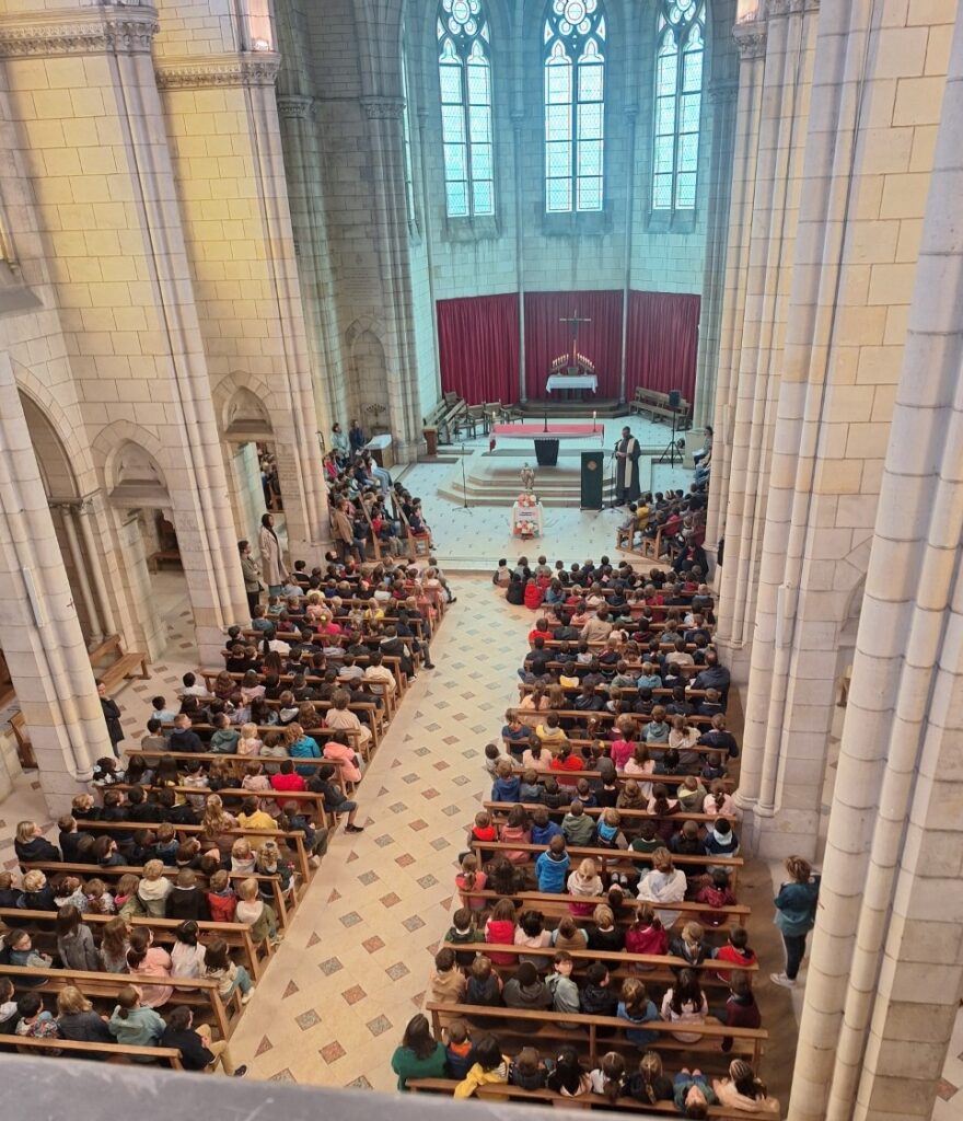 Au sein de la chapelle du Sacré Coeur de Jésus, les classes ont été réunies afin de vivre un temps fort en ce début d’année. Les élèves, leurs enseignants et le personnel OGEC présent ont été bénis par Frère Jean-Syméon. Une belle année s’annonce, donnons le meilleur!