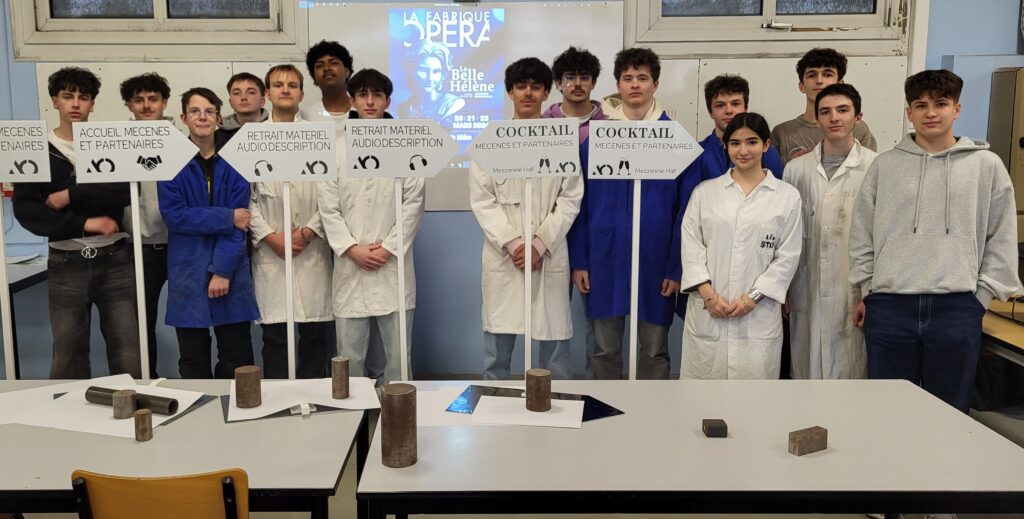 Dans ce contexte où des établissements scolaires font valoir leur savoir-faire dans la réalisation des décors, accessoires, costumes, maquillages, coiffures et collations, les élèves de première STI2D ont imaginé et réalisé la signalétique pour guider les spectateurs lors du spectacle. Les Terminales STI2D ITEC et SIN ont conçu et réalisé un « chariot moutons » motorisé, piloté à distance. La qualité de leur travail a été unanimement saluée par l’équipe de la Fabrique Opéra.