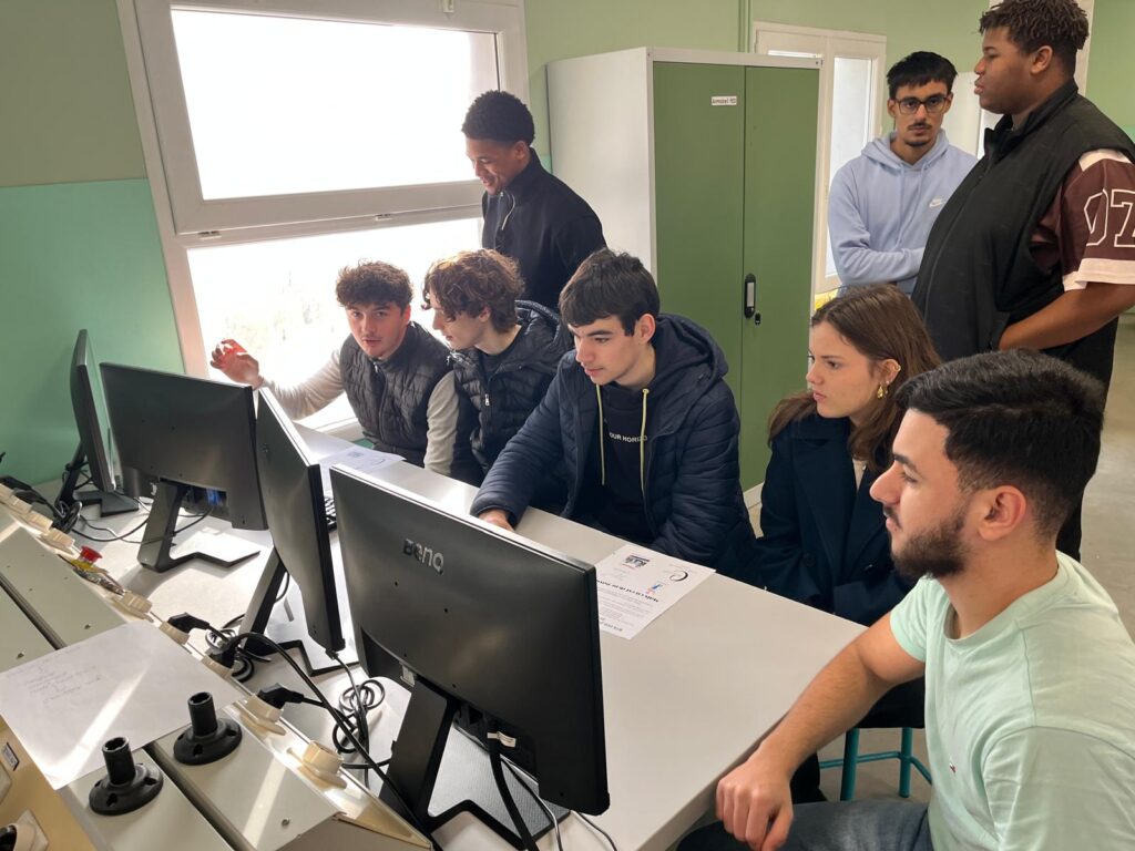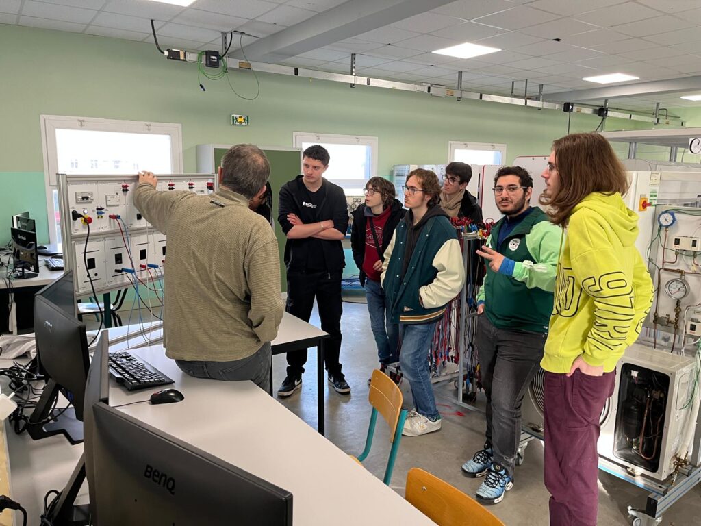 Dans le cadre de la découverte des filières, les étudiants de BTS FED (Fluides, Energies et Domotique) ont accueilli les élèves de terminales Melec et Sti2D afin de leur présenter quelques activités en lien avec leurs champs professionnels : diagnostique énergétique d’un bâtiment à l’aide de caméras thermiques, étude de plans et recherche à l’aide du logiciel Autocad, manipulations sur systèmes de gestion de bâtiments sous protocole KNX. Les élèves et étudiants ont apprécié ses temps d’échange, qui ont peut être fait naitre de futures vocations