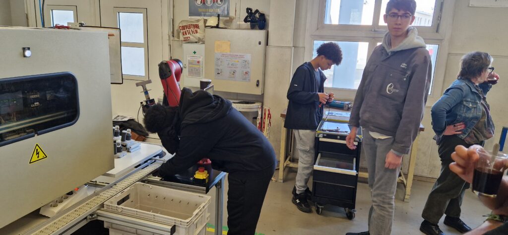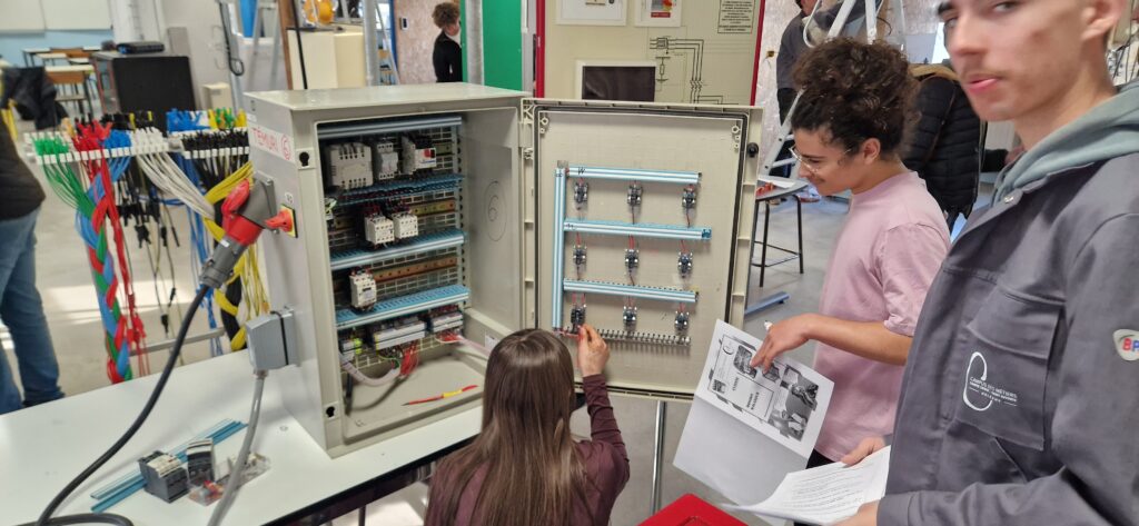 Cette année encore ,des collègiens de 4ème ont souhaité découvrir les filières industrielles à travers des mises en situation très réalistes en maintenance industrielle ( bac pro MSPC – Maintenance des Systèmes de Production Connectés) et un escape game en Électricité industrielle ( Bac Pro MELEC – Métiers de l’ELectricité et son Environnement Connecté).