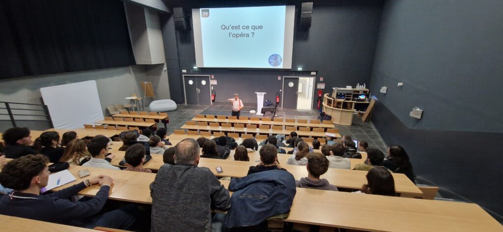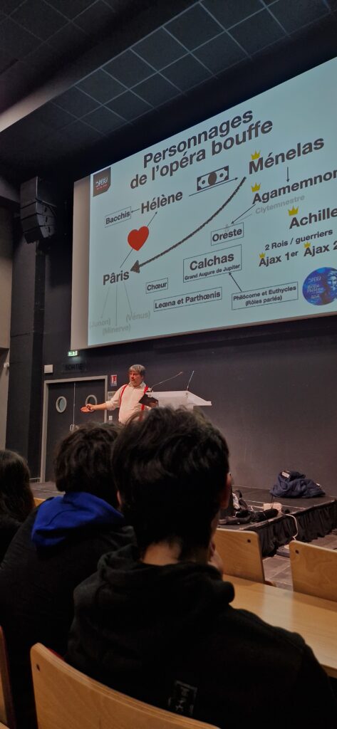C’est avec passion que Clément JOUBERT, le chef d’orchestre de l’association « LA FABRIQUE OPERA  » est venu présenter,aux élèves et étudiants des filières Bac technologique STI2D, Bts Diététique et Bts Tourisme, l’opéra « La belle Hélène », qui sera joué au ZENITH d’Orléans du 20 au 22 Mars 2026.